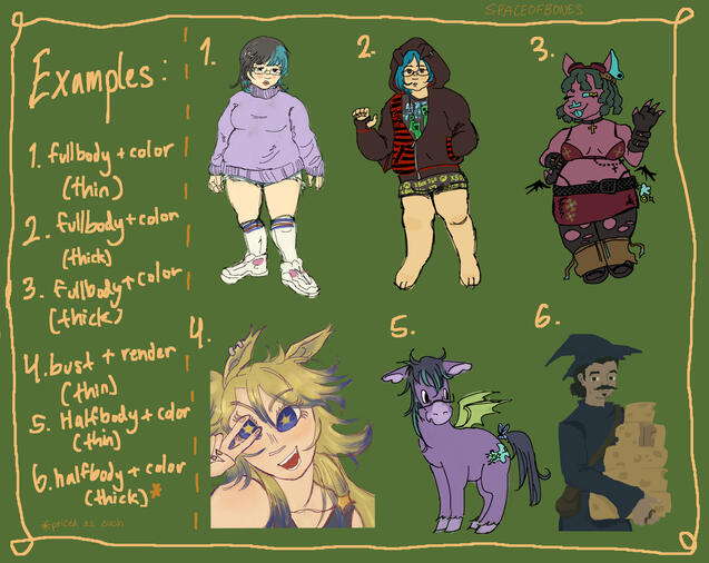*sketchpages include a bust, halfbody, fullbody, and extra doodles